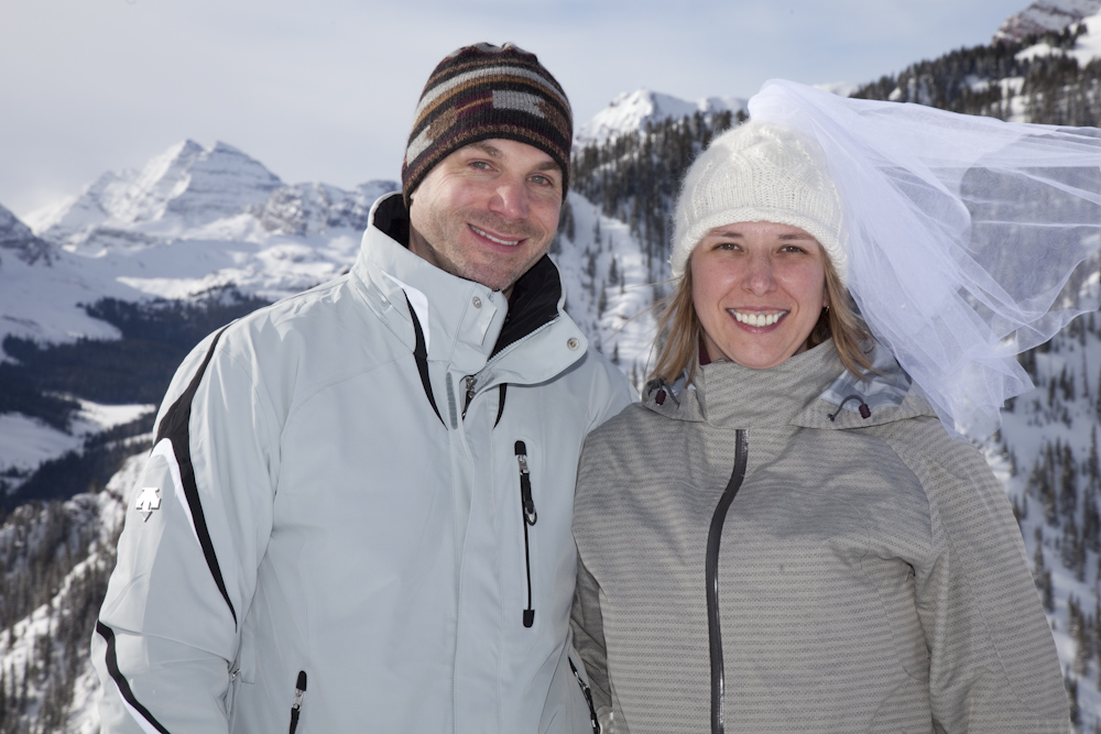 Congratulations to Ariann and Doug of Portland, OR who eloped to Aspen last week. We spent a couple hours skiing and snowboarding at Snowmass Ski Area near Snowmass Village, Colorado to document their occasion.